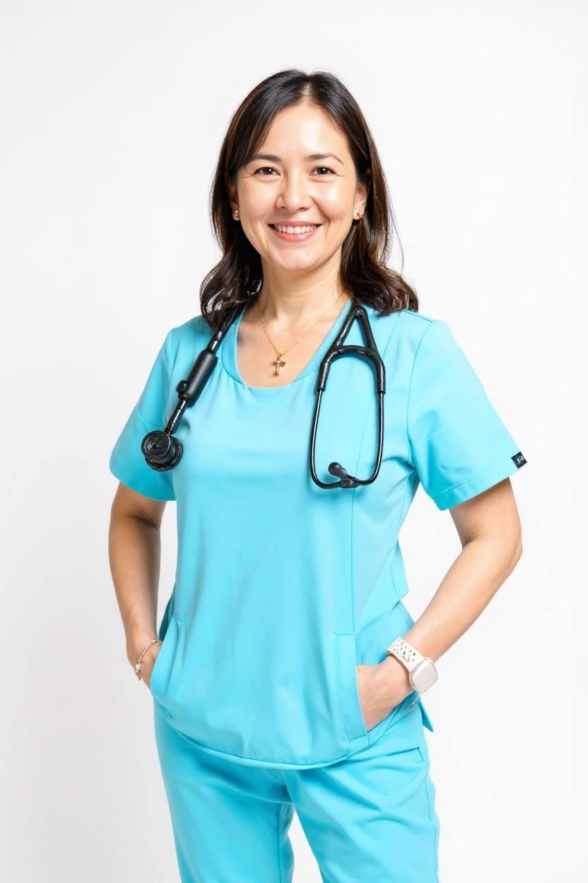 Flattering Round Neckline: This scrub top features a flattering round neckline that not only enhances your comfort but also offers a silhouette-enhancing effect.